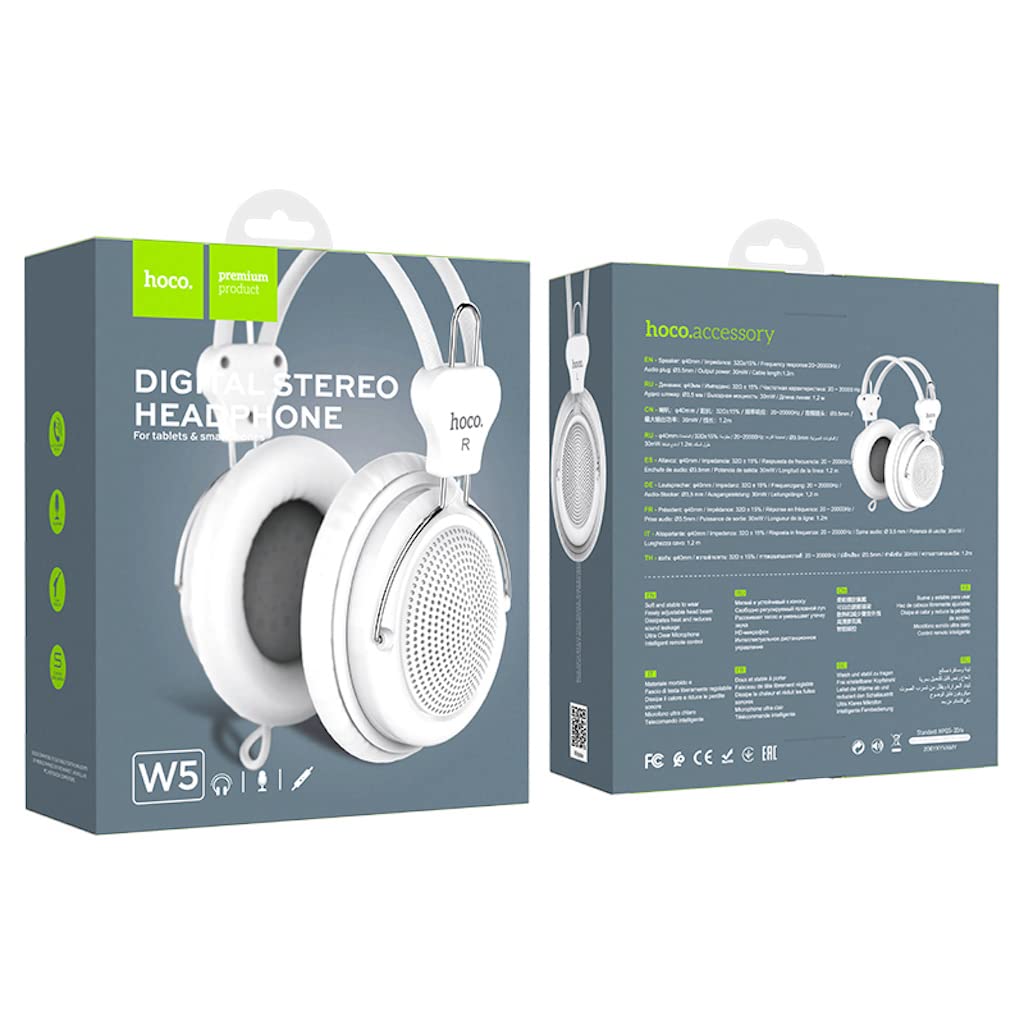 Ακουστικά Stereo Hoco W5 Manno 3.5mm ασπρο με Μικρόφωνο και Πλήκτρο Ελέγχου. Τα εύχρηστα αυτά ακουστικά είναι και ιδιαίτερα άνετα εξαιτίας του μαλακού υλικού στα δύο ακουστικά καθώς και στην δυνατότητα ρύθμισης του σώματος καθ’ ύψος. Το πλήκτρο ελέγχου σας δίνει την δυνατότητα να απαντάτε ή τερματίζετε κλήσεις ή να ελέγχετε την αναπαραγωγή μουσικής.